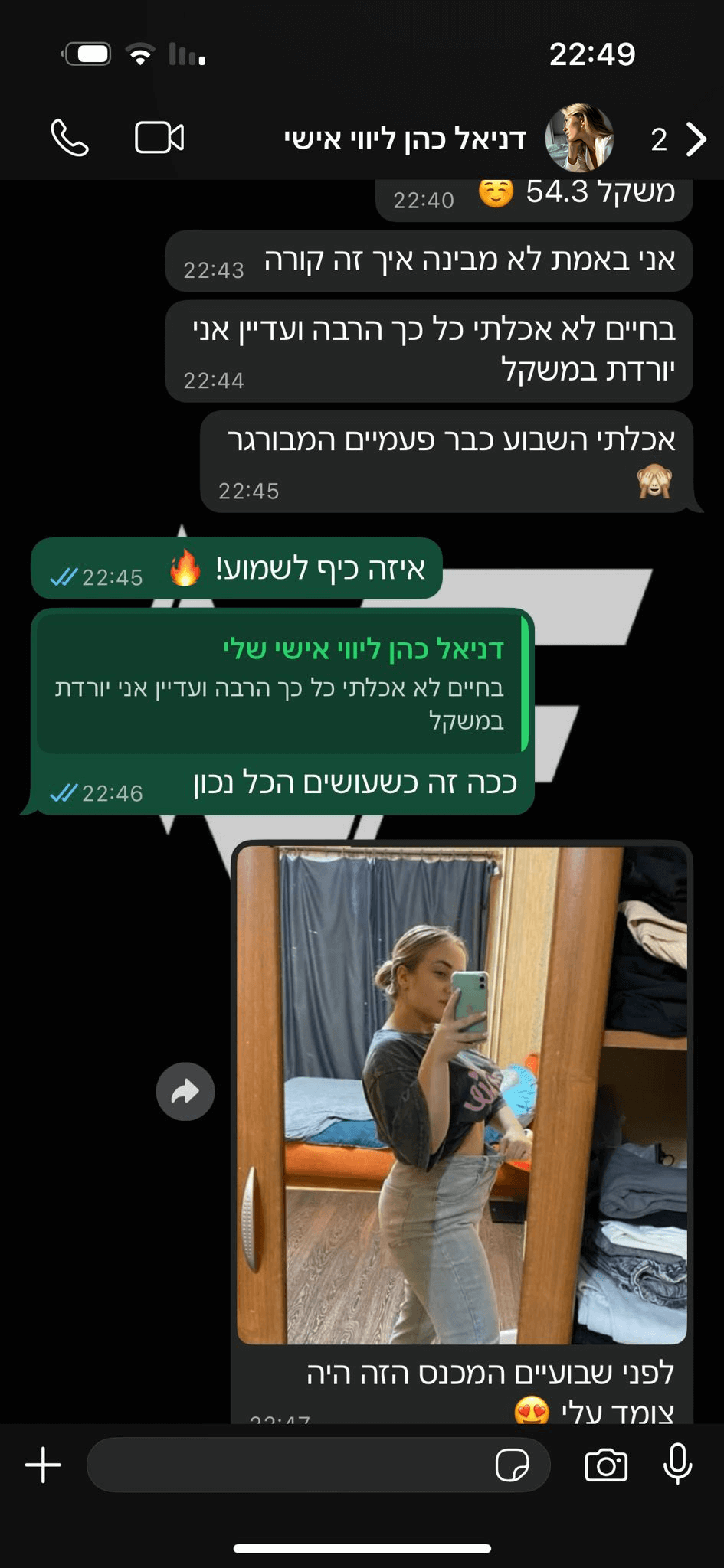 שקילות, מדידות, בדיקות אחוזי שומן, תוכנית אימונים שקל להתמיד בה וכמובן תזונה נכונה התליך נשאר דיסקרטי ולא נשתף אותו עם אנשים אחרים אלה אם תבחר אחרת.